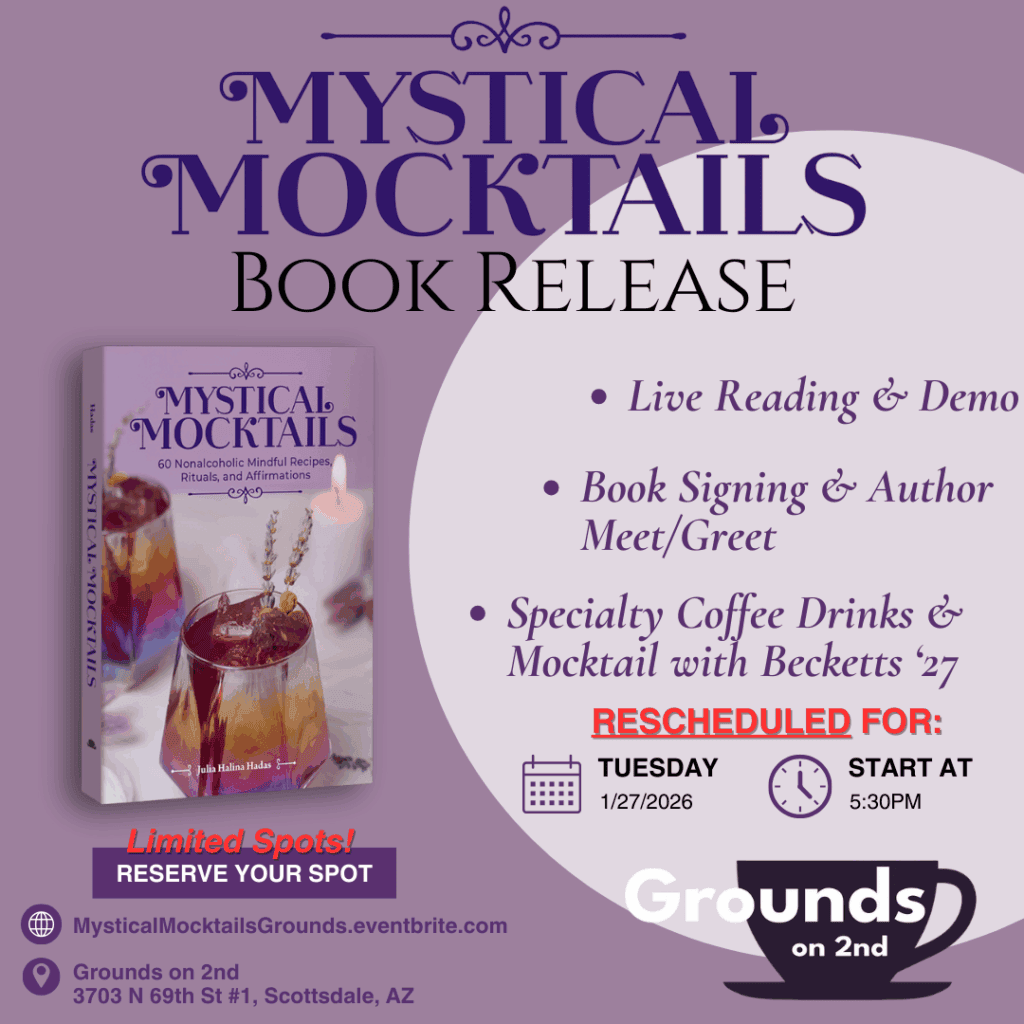 February TBA at 6pm (Gilbert, AZ) – Moon Mocktail Ritual (Paid) at Tree of Life Metaphysical – Info Coming Soon